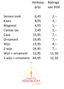 Met iedere aankoop steun je direct De Grootste Kerstboom, zie de laatste foto voor de prijzen en de bijdragen.