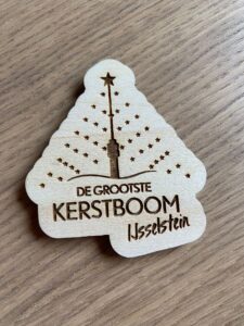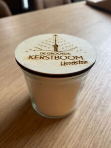 en al onze andere leuke cadeaus met het logo of beeldmerk van De Grootste Kerstboom, zoals een (senseo) thee/koffie mok, een leuke kaars, een (koelkast) magneet en om alles in te pakken en mee te nemen een duurzame IJsselsteinse canvas tas.