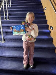 De derde prijs werd gewonnen door Nova (8 jaar), die met haar kleurrijke tekening een prachtig teken- en kleurboek én een set kleurpotloden mee naar huis mocht nemen.