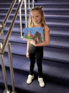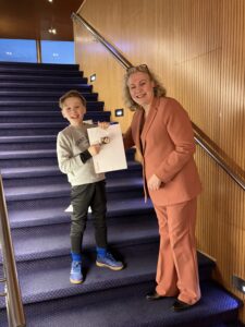 De derde prijs werd gewonnen door Nova (8 jaar), die met haar kleurrijke tekening een prachtig teken- en kleurboek én een set kleurpotloden mee naar huis mocht nemen.